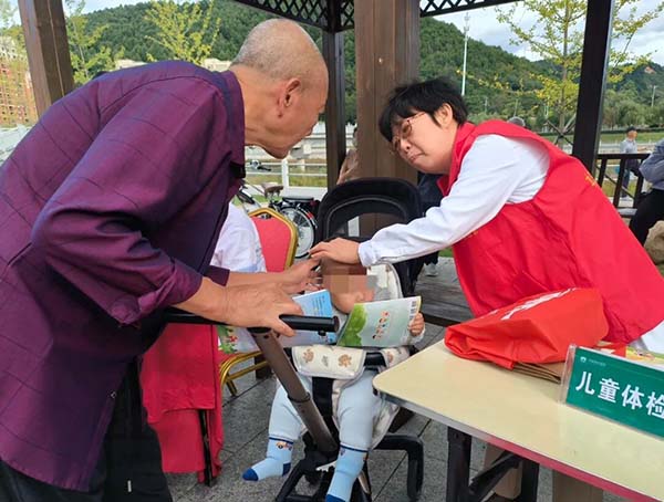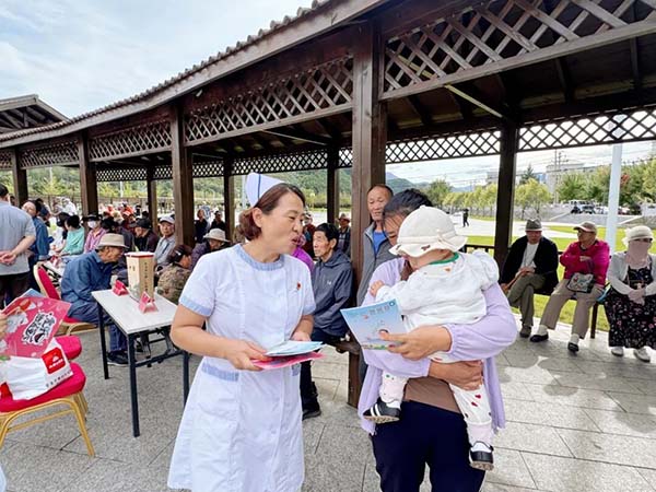 在9月20日第37个全国爱牙日和9月21日第32个世界阿尔茨海默病日即将到来之际,当天来自老年医学科、口腔科的专家还为百姓提供了口腔健康指导、老年认知评估等精准医疗服务。同时,医护志愿者还分别为有特殊需求的患者免费发放了降脂、降压及退热止痛类药物近500盒,免费发放《海姆立克急救法》《心肺复苏术》《教你如何正确拨打“120”》《高血压护理知识》《糖尿病护理知识》《脑卒中、冠心病症状知多少》《糖尿病日常注意事项》《高血压营养治疗》等科普宣传材料400余份。