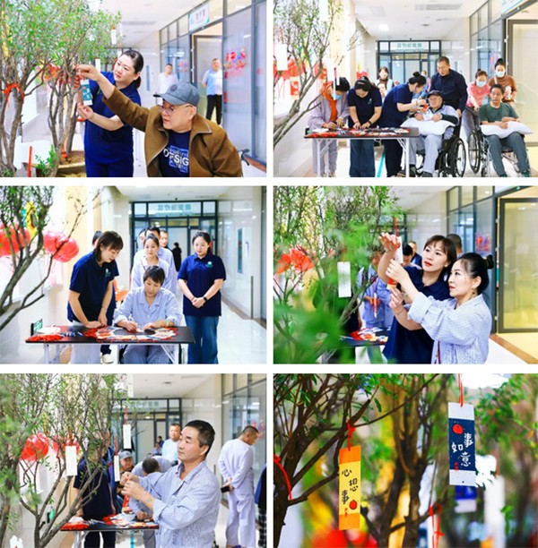 联欢会尚未开始前,康复医学科理疗大厅里暖意融融,张灯结彩。轻松欢快的背景音乐萦绕耳畔,大屏幕滚动播放着患者康复训练花絮、医护工作美好瞬间及祝福短片,不少患者与家属写下2026年美好心愿,并将承载着健康愿望的卡片轻轻挂在“心愿树”上,表达大家对康复的期盼和对生活的热爱。