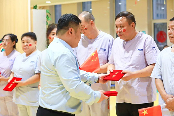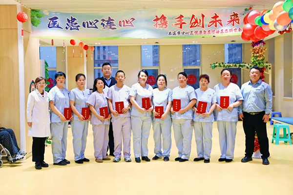 患者服务中心负责人孙黎鹂和泰心康护公司本溪分公司经理宋超、纪物明为在2025年在康复医学科辛勤工作的护工进行了表彰奖励。