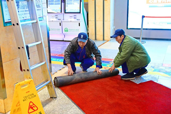 防滑除险,守护出行“安全通道”。医院建立雨雪天气应急清扫机制,组建专项工作小组,配备除雪铲、融雪剂、清扫车等工具,做到“雪停即扫、雪落即清”,重点清理医院道路、台阶、坡路等关键区域的积雪积冰;在门诊、住院楼出入口、走廊通道等人员密集区域铺设防滑垫,合理撒布融雪剂,并醒目设置“小心地滑”警示标识,全方位防范滑倒摔伤事件发生。