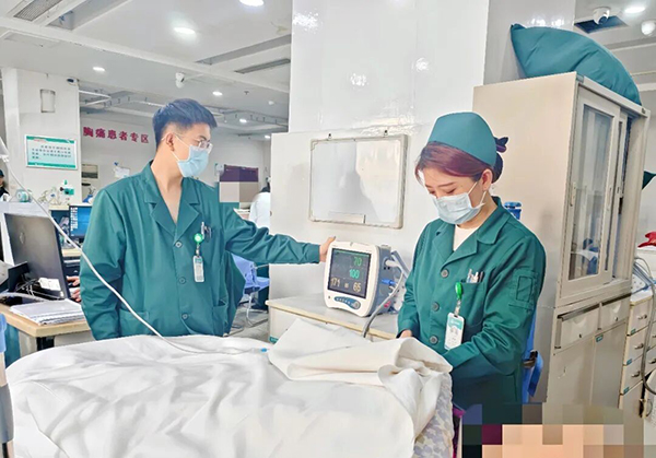急诊抢救室的生命绿色通道瞬间激活,急诊抢救小组闻令而动、无缝衔接,一场与死神的竞速赛全速开启。胸外心脏按压持续有力,为生命重启筑牢基础;及时氧疗精准实施,充分保障患者氧合;医护团队分工明确、配合无间,每一个操作都快、准、稳,凝聚着守护生命的坚定力量。护士马晓琳迅速建立静脉通路,为抢救药物输送搭建生命通道;代宏君护士严格遵医嘱精准用药,分秒不差把控剂量;陈嘉盛护士持续心电监护,精准分析心律失常变化,捕捉每一个生命信号。