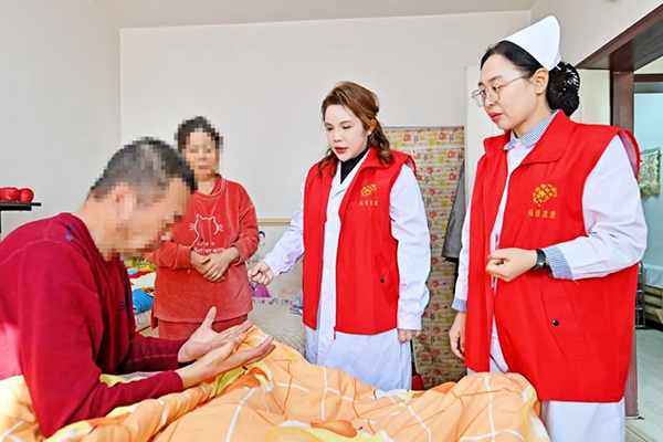 为切实服务社区高龄、行动不便及卧床居民,我院还专门组建志愿服务队,提前与社区卫生服务中心对接预约,上门开展入户送医服务。专家为有8年脑出血后遗症、4年气管切开置管史的长期卧床患者,细致评估病情、规范护理管路、指导家属科学照护与康复训练,耐心解答日常护理、用药及并发症预防等问题,减少其肺部感染情况的发生……“我和老伴下楼都费劲儿,真是太感谢中心医院的专家们了,让我们在家就把病看了,还给我们提供了专业的指导,谢谢你们!”今年70多岁患有风湿性骨关节炎的大爷见到专家万分激动地说,脸上满是感激。